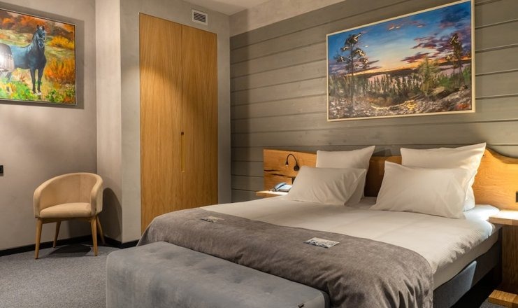 Мебель: Кровать двуспальная, тумба, стол, стул, шкаф