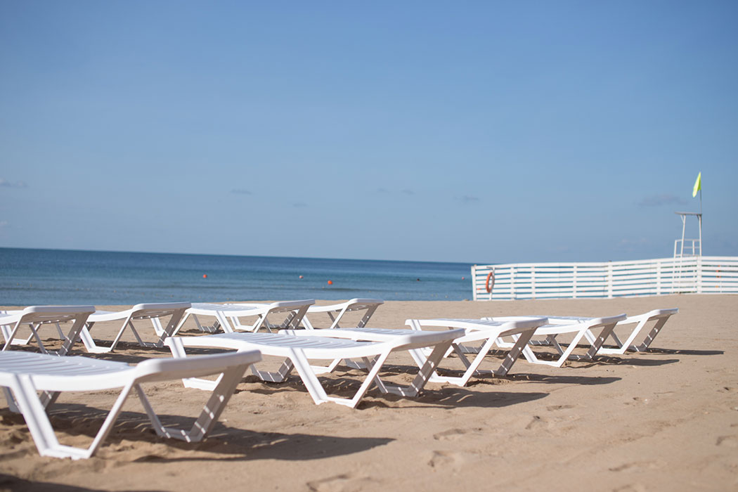 До оборудованного песчаного пляжа 800 м. Все корпуса равно удалены от моря.